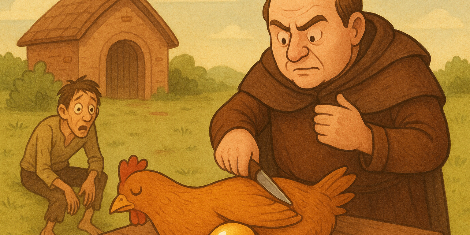 Érase una gallina que ponía un huevo de oro al dueño cada día.