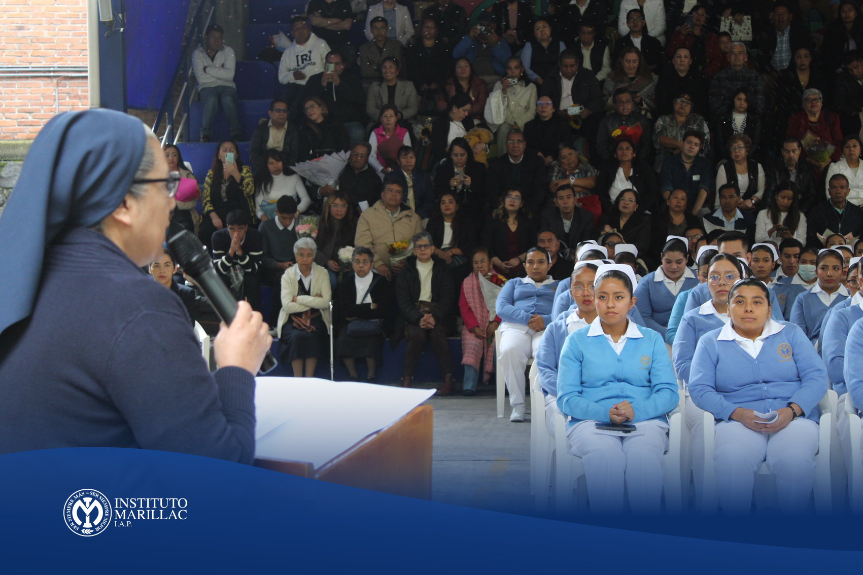 La ceremonia fue especialmente emotiva al tratarse de la primera generación de nuestra Licenciatura en Enfermería. Cada cofia colocada, cada fistol entregado, simbolizó el nacimiento de una nueva etapa: la de futuros profesionales comprometidos con los más altos valores del Instituto Marillac IAP, con la mirada puesta en la excelencia académica y el profundo sentido humano que nos distingue.