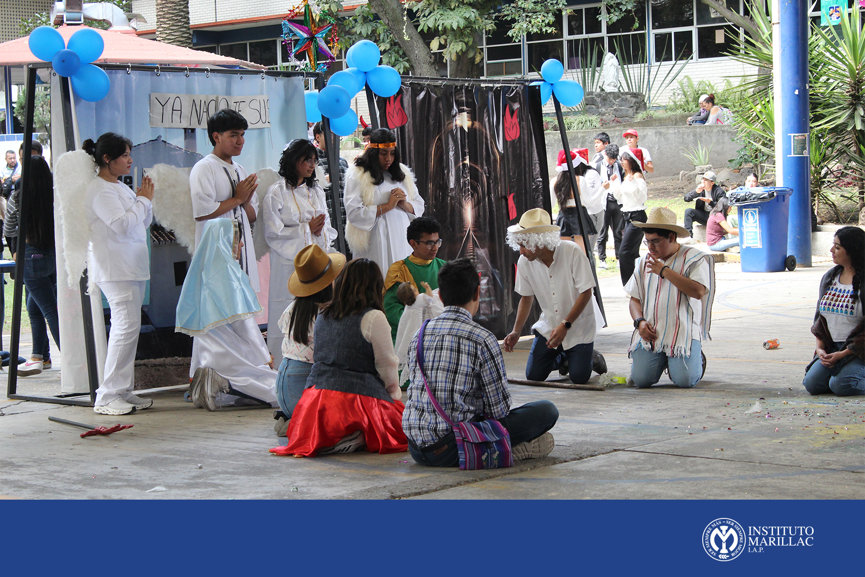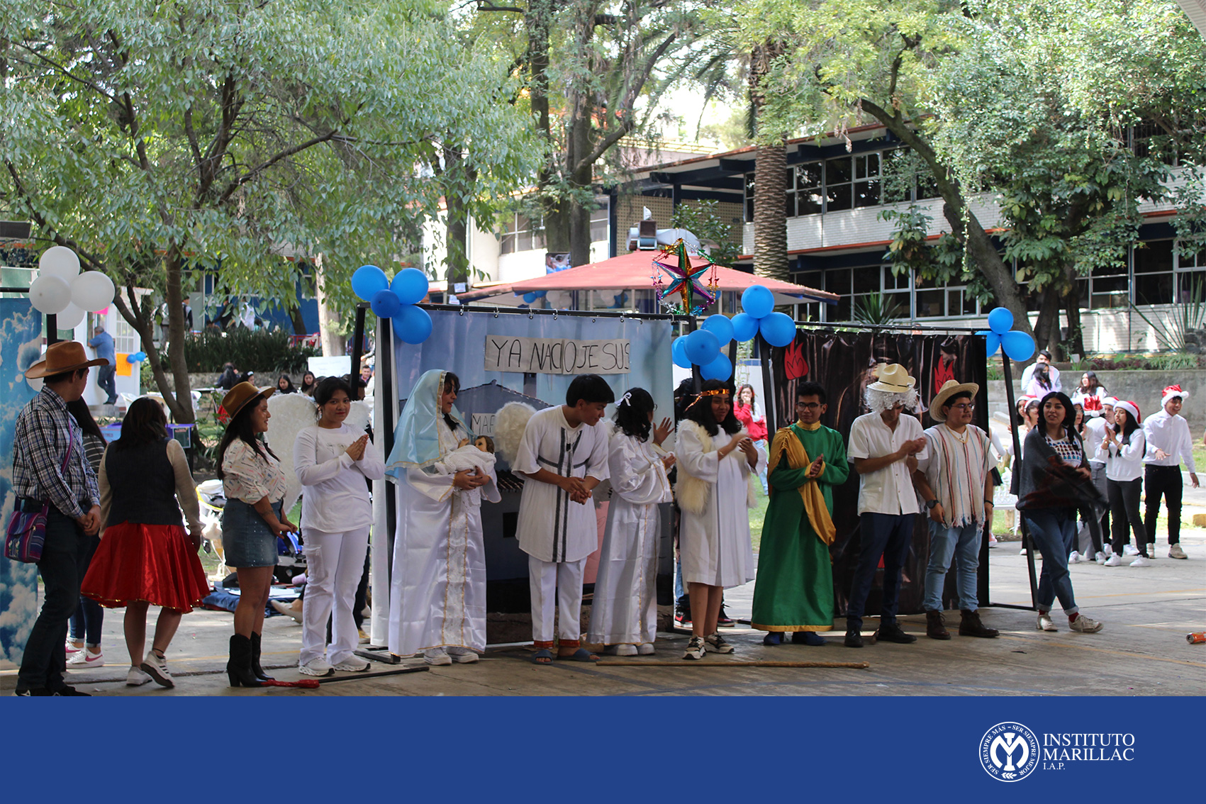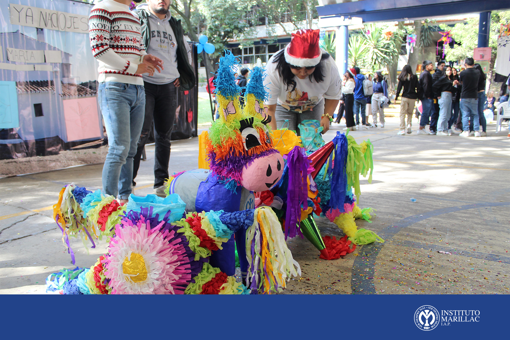 Posteriormente el grupo de danza folklórica Mitztemoa Noyollo ambientó el momento con bailes típicos de México, y claro; no podía faltar la tradicional pastorela con un toque juvenil y divertido. Las piñatas se hicieron presentes, elaboradas por nuestros alumnos de CCH-Marillac quienes compartieron con cada uno de nosotros la participación del tradicional dale, dale, dale…