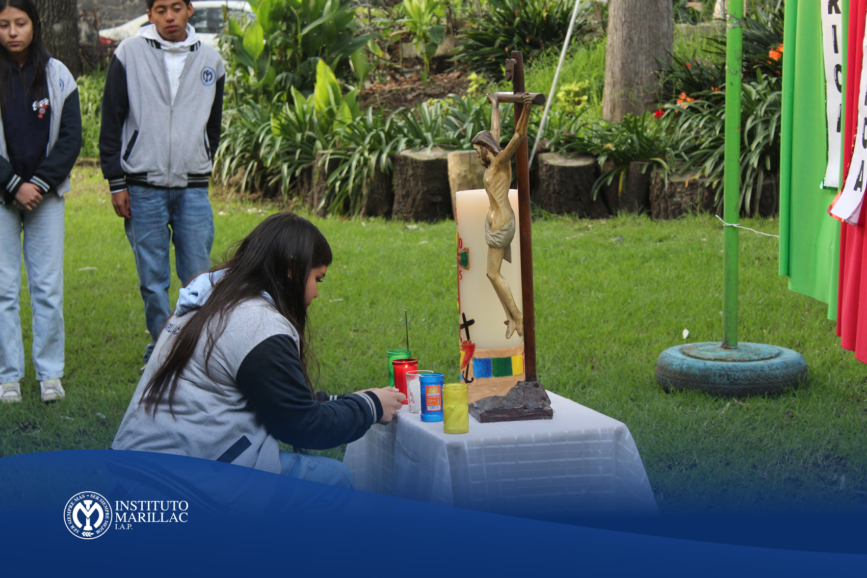 La comunidad educativa del Instituto Marillac vivió una jornada especial de fe y unidad al participar con devoción en el Rosario Misionero 2025. La actividad se llevó a cabo en el patio de la cruz de madera, un espacio significativo dentro de nuestra institución, que se transformó en un lugar de encuentro espiritual y reflexión compartida.